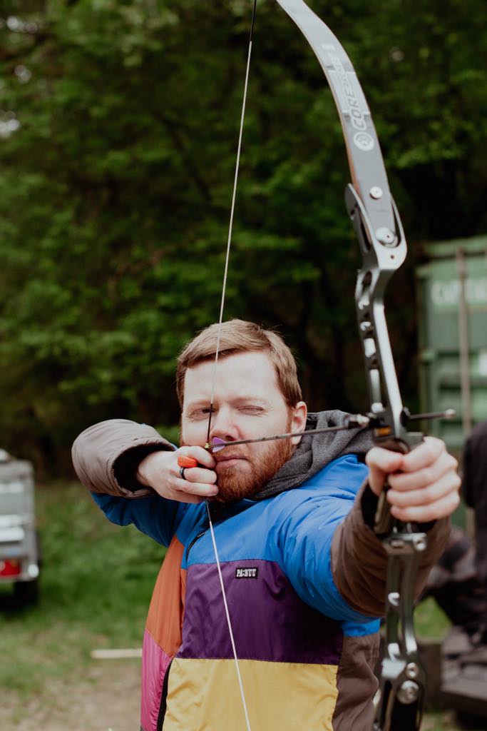 Her er i delt op i hold og skal skyde efter hinanden med pile (der selvfølglig er ufarlige).